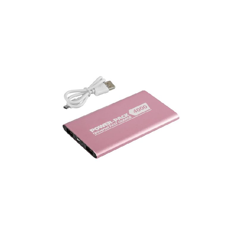 Sottile batteria d'emergenza ai polimeri di litio con 2 porte Usb. Leggera struttura in alluminio che facilita la dispersione di calore. Fornita carica e pronta all’uso. Ricarica veloce universale. Lo speciale chip riconosce il protocollo di ricarica del dispositivo collegato e fornisce energia ottimale per una ricarica veloce e protetta. Protezione da corto circuito, surriscaldamento, sovraccarico. Capacità 4000 mAh - Uscita: 2400 mA (tot.). - Cavo Micro Usb da 30 cm incluso.