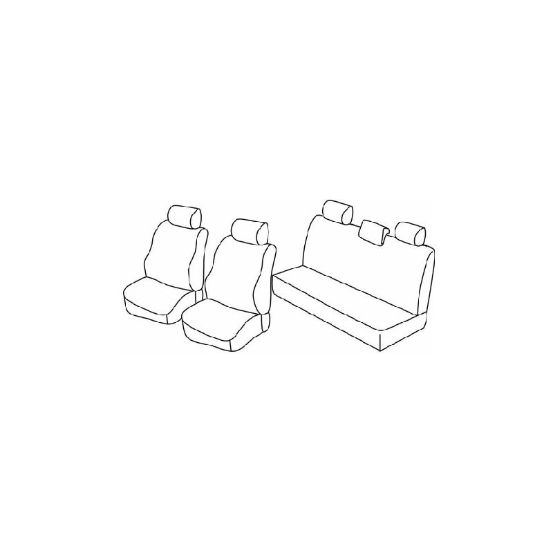 ? Lavorazione artigianale con tecnologia Cad/Cam e con cura nei minimi particolari per un montaggio "Perfect-Fit?. ? Seguono scrupolosamente la sagoma dei sedili e aderiscono perfettamente come il rivestimento originale. Quando installate diventano un corpo unico con i sedili. ? Doppie cuciture a vista. ? Tessuto tecnico in poliestere, certificato Oeko-Tex? Standard 100. Altissima resistenza alla rottura, abrasione, sfregamento, peeling, scolorimento, lavaggio (standards UNI EN ISO 105X12, 105-E01, 13934-1, FIAT 50455/A/01). Non scolorisce al sole e nei ripetuti lavaggi. ? Imbottitura di supporto in spessa spugna antipiega da 8 mm accoppiata con maglina. ? Fianchi e retro elasticizzati, con spugna da 4 mm accoppiata a maglina. ? Taglio e cuciture simili al sedile originale. ? Con tasche di serie. ? Completo di aperture per poggiatesta, airbag e copripoggiatesta, copribraccioli, ecc. in conformit? alle caratteristiche dell?auto. ? Prodotto in Europa utilizzando tessuti italiani.