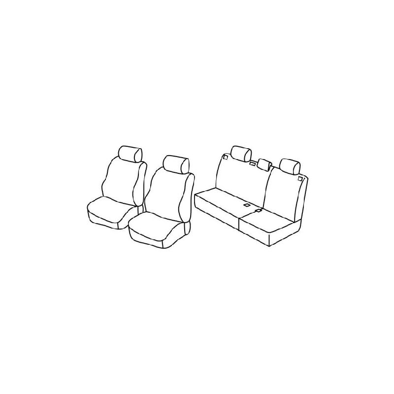 ? Lavorazione artigianale con tecnologia Cad/Cam e con cura nei minimi particolari per un montaggio "Perfect-Fit?. ? Seguono scrupolosamente la sagoma dei sedili e aderiscono perfettamente come il rivestimento originale. Quando installate diventano un corpo unico con i sedili. ? Doppie cuciture a vista. ? Tessuto tecnico in poliestere, certificato Oeko-Tex? Standard 100. Altissima resistenza alla rottura, abrasione, sfregamento, peeling, scolorimento, lavaggio (standards UNI EN ISO 105X12, 105-E01, 13934-1, FIAT 50455/A/01). Non scolorisce al sole e nei ripetuti lavaggi. ? Imbottitura di supporto in spessa spugna antipiega da 8 mm accoppiata con maglina. ? Fianchi e retro elasticizzati, con spugna da 4 mm accoppiata a maglina. ? Taglio e cuciture simili al sedile originale. ? Con tasche di serie. ? Completo di aperture per poggiatesta, airbag e copripoggiatesta, copribraccioli, ecc. in conformit? alle caratteristiche dell?auto. ? Prodotto in Europa utilizzando tessuti italiani.