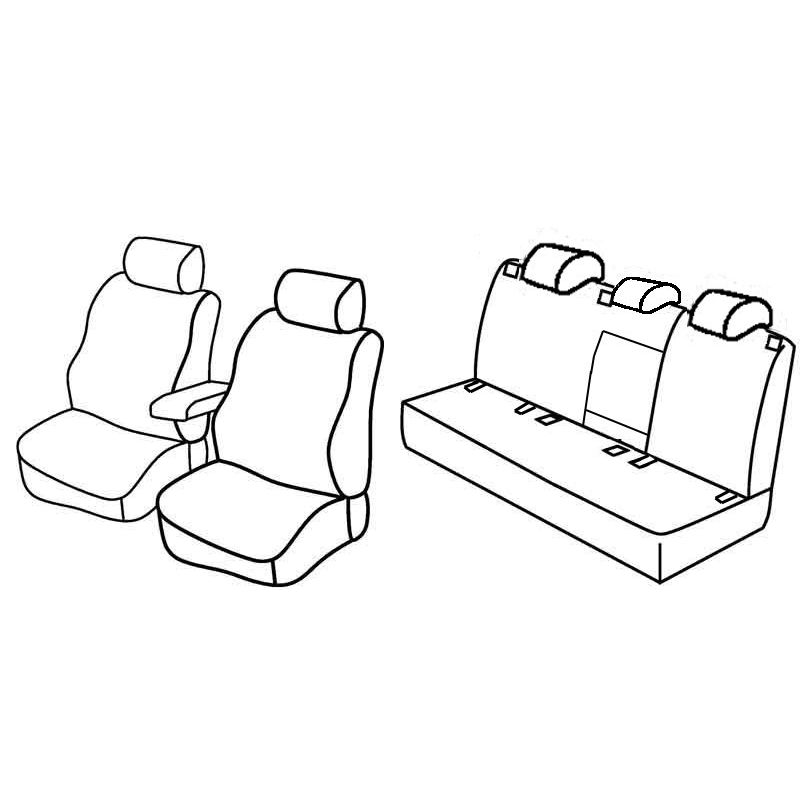 ? Lavorazione artigianale con tecnologia Cad/Cam e con cura nei minimi particolari per un montaggio "Perfect-Fit?. ? Seguono scrupolosamente la sagoma dei sedili e aderiscono perfettamente come il rivestimento originale. Quando installate diventano un corpo unico con i sedili. ? Doppie cuciture a vista. ? Tessuto tecnico in poliestere, certificato Oeko-Tex? Standard 100. Altissima resistenza alla rottura, abrasione, sfregamento, peeling, scolorimento, lavaggio (standards UNI EN ISO 105X12, 105-E01, 13934-1, FIAT 50455/A/01). Non scolorisce al sole e nei ripetuti lavaggi. ? Imbottitura di supporto in spessa spugna antipiega da 8 mm accoppiata con maglina. ? Fianchi e retro elasticizzati, con spugna da 4 mm accoppiata a maglina. ? Taglio e cuciture simili al sedile originale. ? Con tasche di serie. ? Completo di aperture per poggiatesta, airbag e copripoggiatesta, copribraccioli, ecc. in conformit? alle caratteristiche dell?auto. ? Prodotto in Europa utilizzando tessuti italiani.