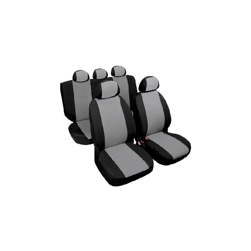 2 anteriori, 2 posteriori (con 3+3 cerniere), 5 copripoggiatesta. Tessuto Jersey (90% poliestere - 10% cotone), imbottiture in spugna