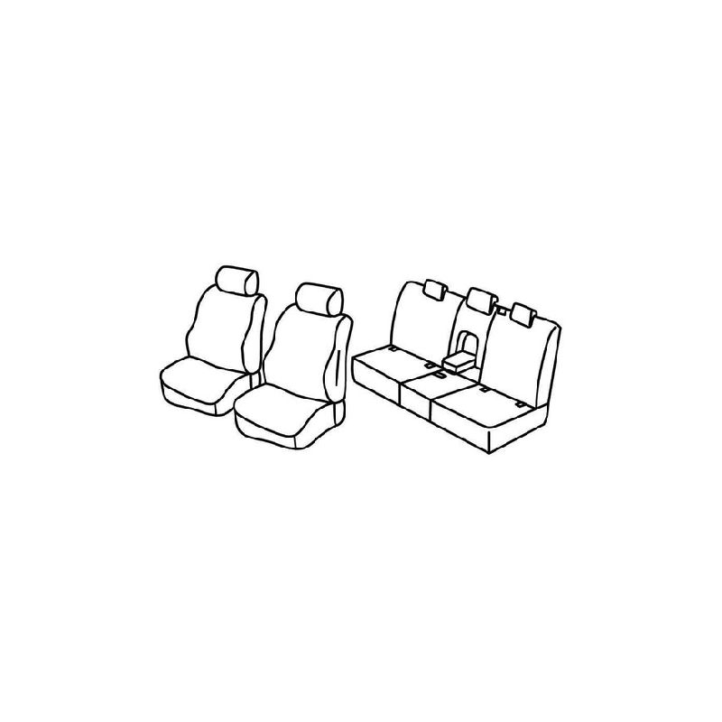 ? Lavorazione artigianale con tecnologia Cad/Cam e con cura nei minimi particolari per un montaggio "Perfect-Fit?. ? Seguono scrupolosamente la sagoma dei sedili e aderiscono perfettamente come il rivestimento originale. Quando installate diventano un corpo unico con i sedili. ? Doppie cuciture a vista. ? Tessuto tecnico in poliestere, certificato Oeko-Tex? Standard 100. Altissima resistenza alla rottura, abrasione, sfregamento, peeling, scolorimento, lavaggio (standards UNI EN ISO 105X12, 105-E01, 13934-1, FIAT 50455/A/01). Non scolorisce al sole e nei ripetuti lavaggi. ? Imbottitura di supporto in spessa spugna antipiega da 8 mm accoppiata con maglina. ? Fianchi e retro elasticizzati, con spugna da 4 mm accoppiata a maglina. ? Taglio e cuciture simili al sedile originale. ? Con tasche di serie. ? Completo di aperture per poggiatesta, airbag e copripoggiatesta, copribraccioli, ecc. in conformit? alle caratteristiche dell?auto. ? Prodotto in Europa utilizzando tessuti italiani.