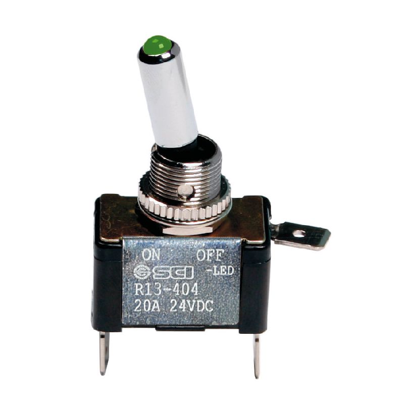 INTERRUTTORE A LEVA,12/24V MAX 20A LED VERDE