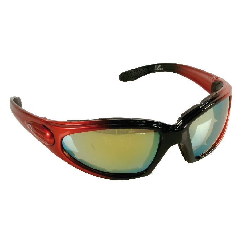 Occhiali con gomma antivento. Lente con trattamento mirror coating per garantire un’alta visibilità. Box porta occhiali e panno per la pulizia lenti inclusi.